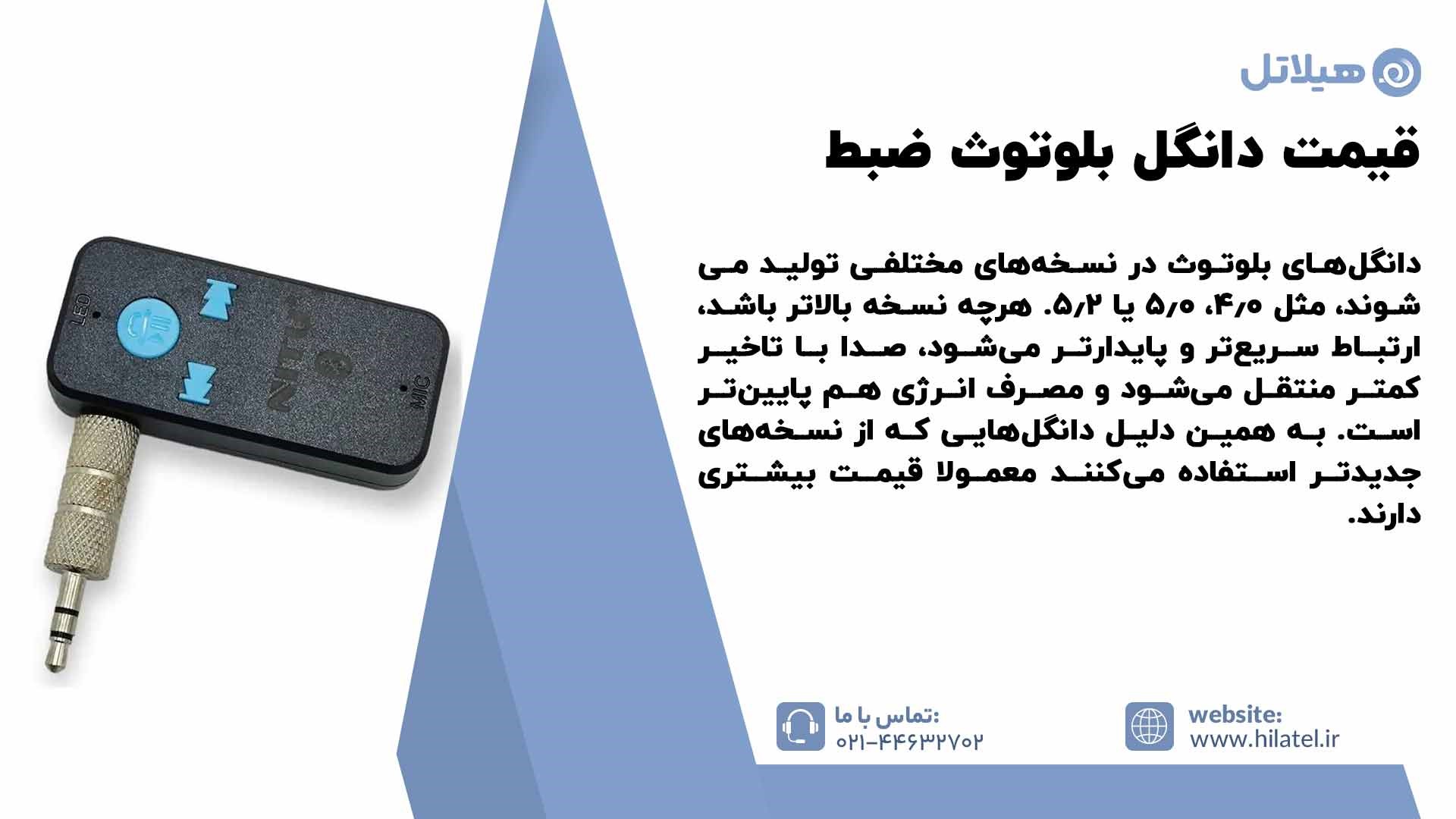 همچنین حتما به نوع ورودی ضبط (AUX یا USB) و سازگاری دانگل با آن توجه داشته باشید تا پس از خرید دچار مشکل نشوید. انتخاب برند معتبر نیز در دوام و کیفیت عملکرد دستگاه نقش مهمی دارد. در صورت نیاز به راهنمایی بیشتر یا هر گونه پرسش درباره خرید دانگل بلوتوث ضبط، میتوانید با کارشناسان سایت هیلاتل تماس بگیرید تا شما را در انتخاب بهترین گزینه راهنمایی کنند.