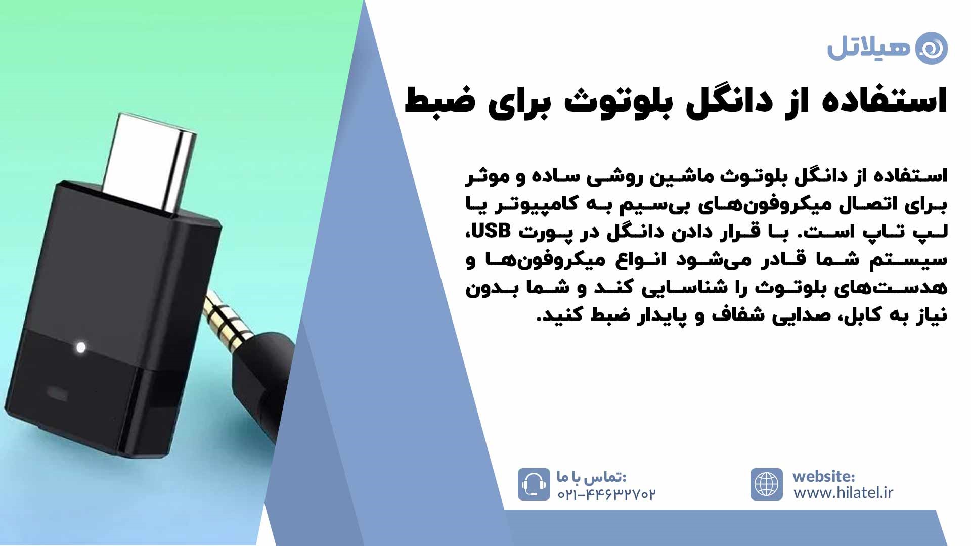 این روش به ویژه برای تولید پادکست، ویدیوهای آموزشی یا برگزاری جلسات آنلاین بسیار کاربردی است. کافیست پس از اتصال دانگل، دستگاه بلوتوث خود را جفت کنید تا آماده ضبط شوید. به این ترتیب، دانگل نه تنها آزادی حرکت بیشتری به شما میدهد، بلکه محیط کاری شما را نیز از شلوغی سیمها خلاص میکند.