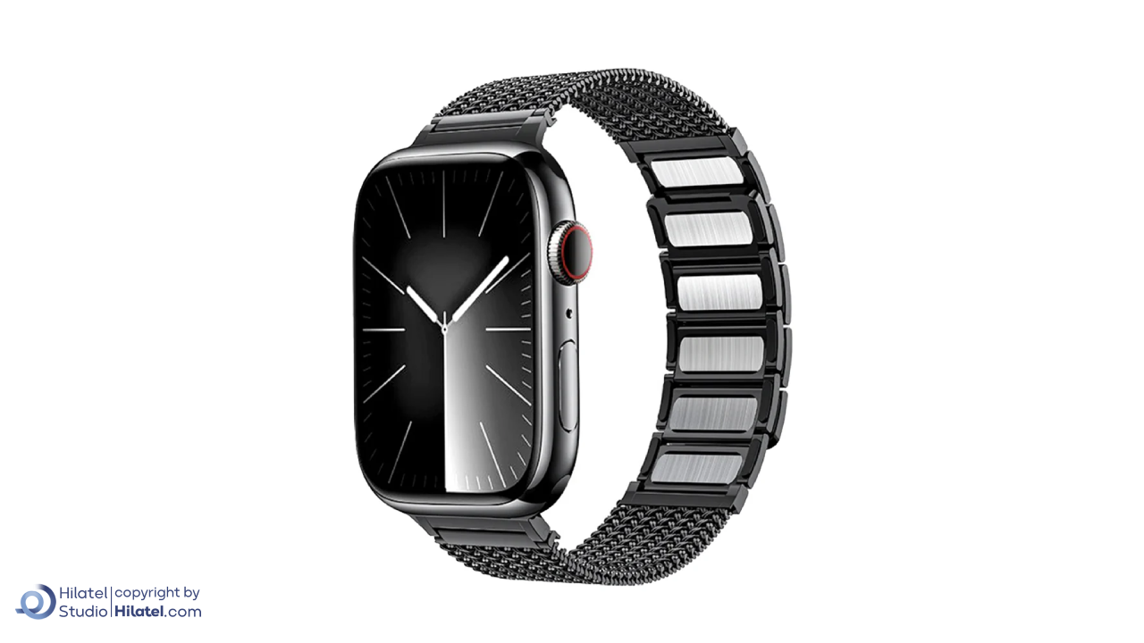 بند ساعت A-Case مدل Hasir مناسب Apple Watch 42/44/45/49 mm یک انتخاب شیک و حرفه ای برای کاربرانی است که میخواهند ظاهر اپل واچ خود را ارتقا دهند. این مدل از بند اپل واچ با طراحی فلزی و ساختار مگنتی، ترکیبی از استایل مدرن و کیفیت ساخت بالا را ارائه میدهد. رنگ مشکی آن جلوه ای خاص و مینیمال ایجاد میکند که به راحتی با استایل رسمی، اداری و حتی روزمره هماهنگ میشود و برای خانم ها و آقایان گزینه ای کاربردی محسوب میشود.