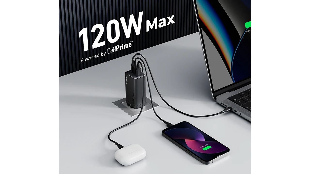 شارژر دیواری 120 وات انکر با قابلیت فست شارژ طراحی شده و دارای ویژگی های زیر است:
