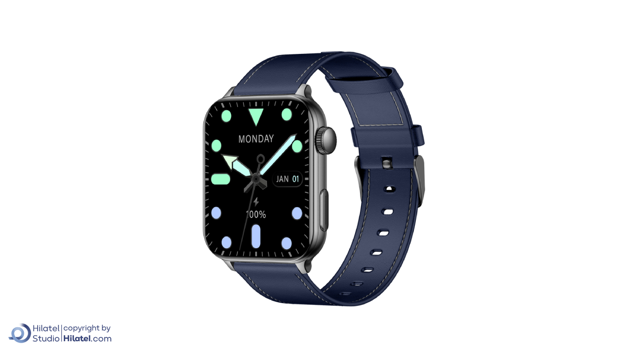 ساعت هوشمند، بند چرمی، بند مگنتی، بند سیلیکونی، کابل شارژ، گلس محافظ صفحه، دفترچه راهنما (فارسی و انگلیسی)
