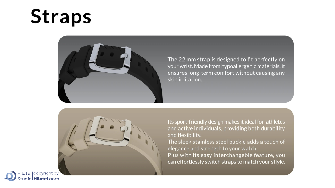 فریم آلیاژ روی تقویت شده؛ بدنه با نوار آلیاژی؛ ۳ دکمه فلزی آلومینیومی؛ تاج دیجیتال با بازخورد لمسی؛ بند قابل تعویض ۲۲ میلی متری؛ بند اسپورت و ضد آلرژی |