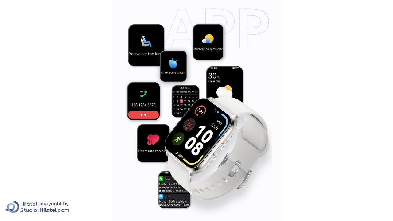 - نمایشگر بزرگ: این ساعت دارای صفحه نمایش 1.85 اینچی با وضوح 240 در 284 پیکسل است. تصاویر، داده ها و اعلان ها روی صفحه این ساعت به وضوح نمایش داده می شوند.