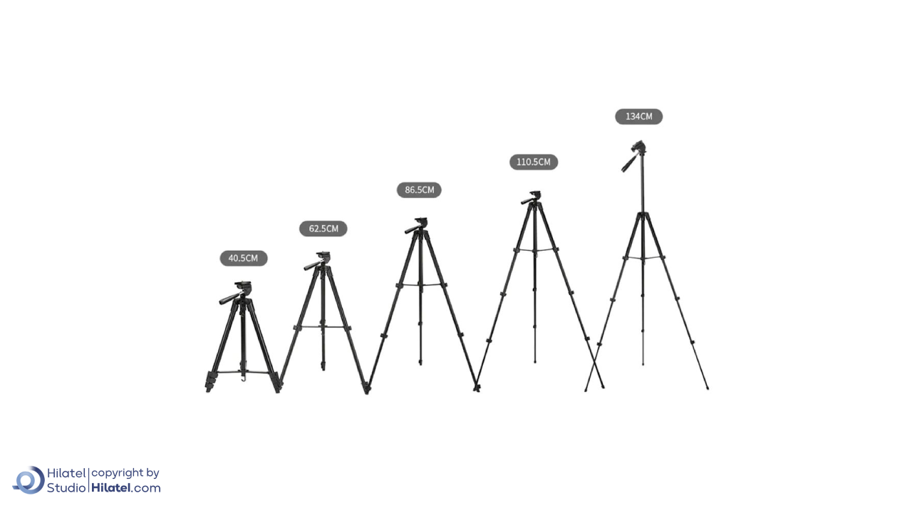 پایه های این محصول در چهار بخش قابل تنظیم هستند و با قفل های گیره ای باز و بسته می شوند. این ویژگی امکان تنظیم آسان ارتفاع را فراهم می کند و باعث می شود سه پایه در سطوح مختلف ثبات خوبی داشته باشد. در قسمت بالایی سه پایه، یک هد سه جهته نصب شده است که به کاربر اجازه می دهد زاویه دوربین را به صورت عمودی، افقی یا مورب تنظیم کند. جدول زیر مشخصات محصول را نشان می دهد.