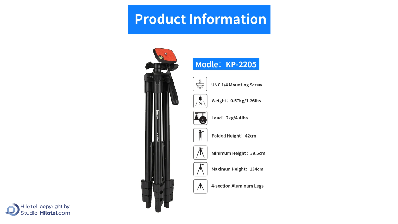 فروشگاه اینترنتی هیلاتل مرجعی معتبر برای خرید انواع لوازم جانبی و تجهیزات مورد نیاز گوشی های هوشمند و دوربین های دیجیتال است. سه پایه جی ماری مدل KP-2205 یکی از محصولات موجود در سایت است که با ضمانت کیفیت و اصالت به فروش می رسد. این کالا پس از خرید، در سریع ترین زمان ممکن درب منزل ارسال می شود.