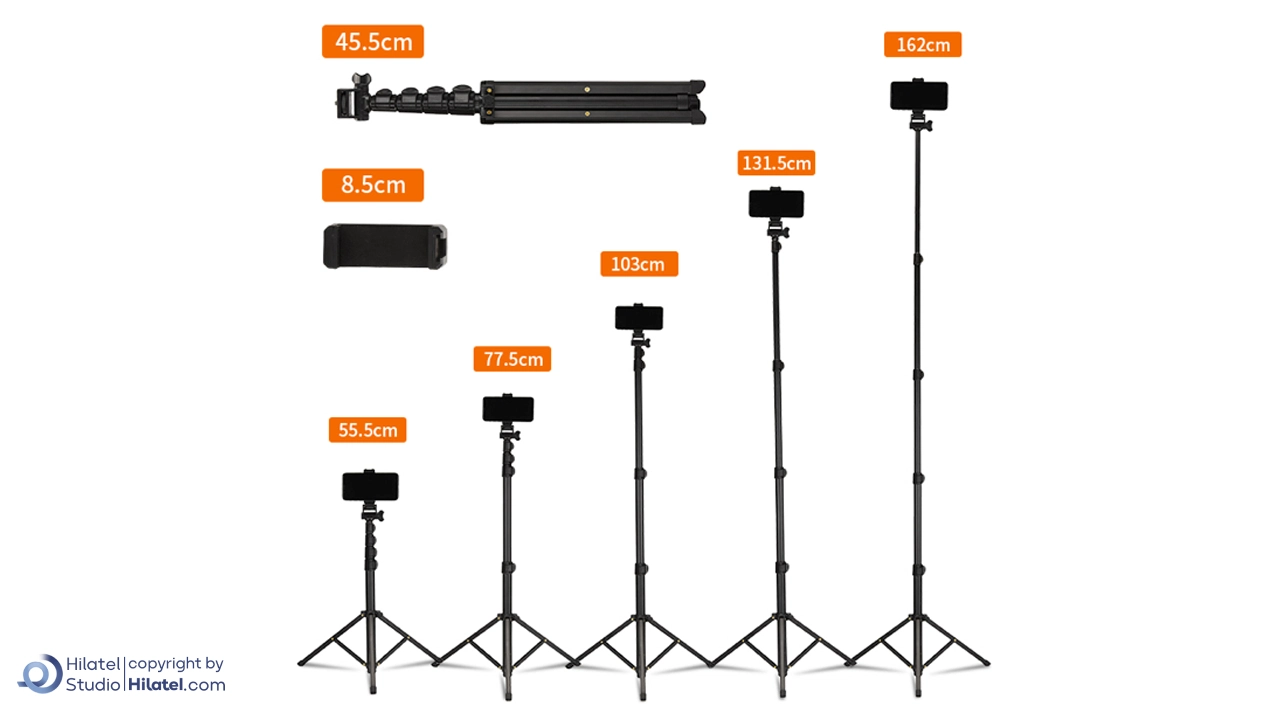 ابعادطول در حالت جمعشده: ۴۴۰ میلیمتر , حداقل ارتفاع: ۴۶۰ میلیمتر , حداکثر ارتفاع: ۱۵۳۰ میلیمتر