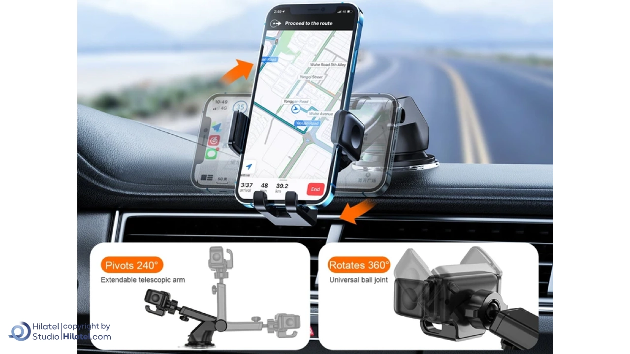 این هولدر با مکش قدرتمند به سطح داشبورد یا شیشه می چسبد و ثبات کاملی ایجاد می کند. پدهای سیلیکونی ضدلغزش از آسیب به بدنه تلفن جلوگیری کرده و چرخش 360 درجه، تنظیم زاویه را در حالت های افقی یا عمودی تسهیل می کند.