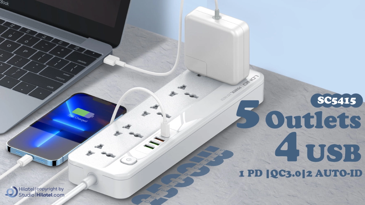 چندراهی برق الدینیو 9 پورت مدل SC5415 انتخابی مناسب برای افرادی است که نیاز به استفاده از چندین دستگاه به صورت همزمان دارند. این پاور استریپ دارای ۵ پریز AC است که امکان اتصال و استفاده از چندین وسیله برقی را به راحتی فراهم می کند.