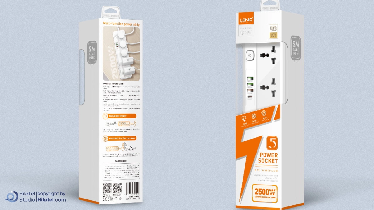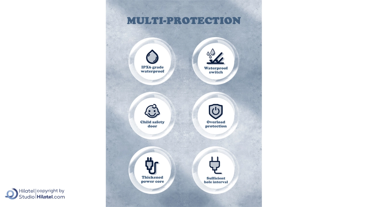 سایر ویژگی هاضدآب IPX6، کلید ضدآب، کابل ضخیم تقویتشده، فاصله مناسب پریزها، محافظت چندگانه (9 لایه ایمنی)