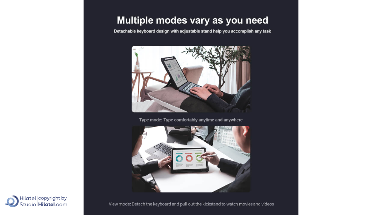 حالت تایپ و مشاهده با پایه قابل تنظیم و کیبورد جدا شونده |