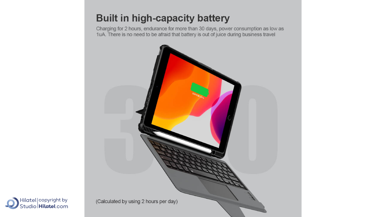 این کیف کیبوردی دارای طراحی زیبا و محافظت قوی است. با داشتن پوشش ضد خط و خش دوربین و باتری بادوام، امنیت و ماندگاری بیشتری فراهم می کند. وجود کیبورد و ترک پد هوشمند، تجربه ای کامل از کار و مطالعه با iPad را ارائه می دهد. خصوصیات این کیف به شرح زیر است.