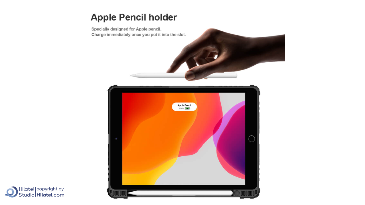 جنس مقاوم ضد سقوط با درجه نظامی و لبه های محکم، اطراف iPad را کاملاً می پوشاند. استفاده از TPU در لبه ها و پلاستیک سخت (PC) در پشت، ایمنی iPad را در برابر ضربه و سقوط فراهم می کند. وجود پوشش کشویی و قاب فلزی 1.1 میلی متری، از دوربین در برابر سایش و آسیب محافظت می کند.