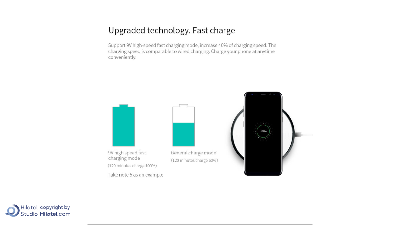 این شارژر از حالت شارژ سریع 9 ولتی با سرعتی تا 40 درصد بیشتر پشتیبانی می کند. سرعت شارژ آن با شارژرهای سیمی برابری می کند و این ویژگی آن را برای کاربران راحت و کاربردی می سازد.