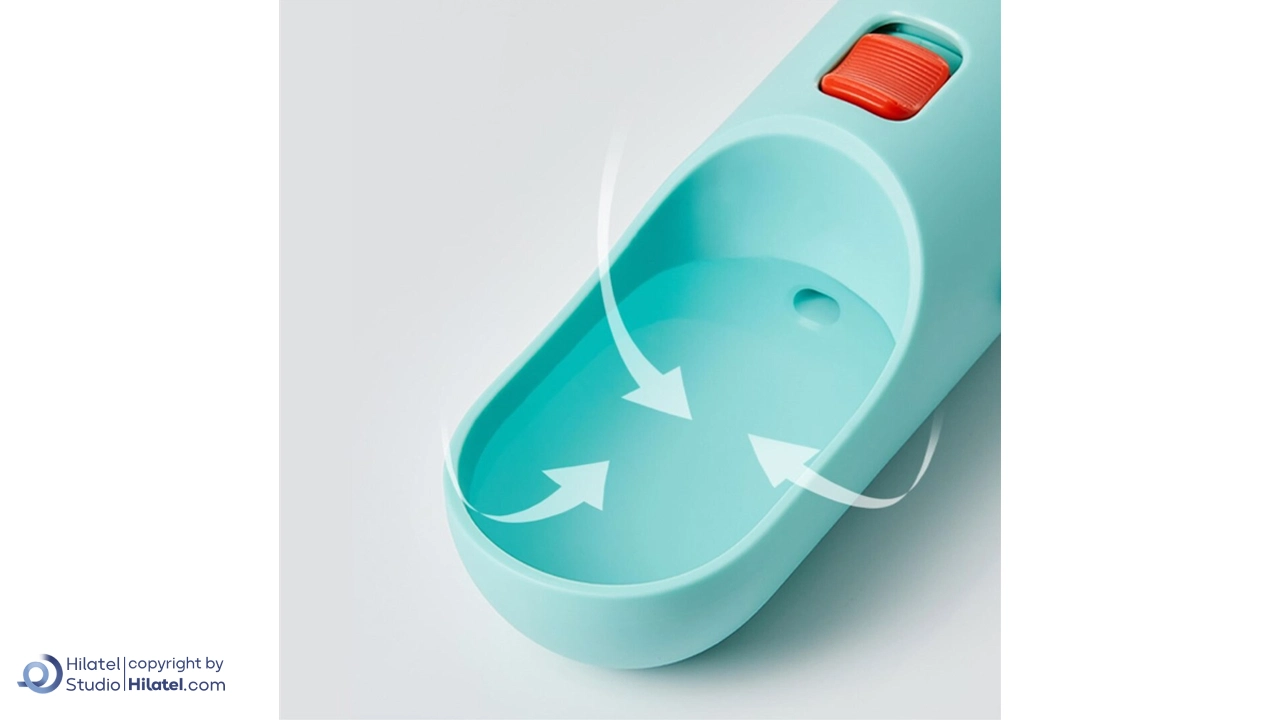 در قسمت بالای بطری آب یک کاسه تعبیه شده تا حیوان مستقیماً از آن بنوشد و نیازی به استفاده از کاسه های جداگانه نباشد. با فشردن دکمه، آب از مخزن بطری وارد کاسه می شود و اگر حیوان آب را تمام نکند با رها کردن دکمه، مایع باقی مانده دوباره به داخل بطری بر می گردد. این ویژگی مانع هدر رفت آب می شود و محیط اطراف را خشک نگه می دارد.