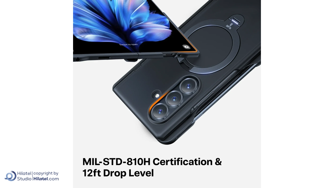 نقاط قوتمحافظت ۳۶۰ درجه با ایربگ و ۳ لایه/ تا شدن آسان و لولای نامرئی/ پایه نگهدارنده ۳۶۰ درجه/ مغناطیسی و مقاوم/ استاندارد نظامی MIL-STD-810H/ طراحی باریک و خوشدست