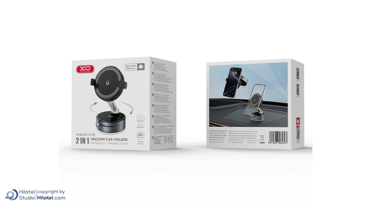 هولدر موبایل وکیومی و مگنتی ایکس او مدل C178 یک پایه نگه دارنده موبایل دو منظوره است. این محصول برای قرارگیری روی داشبورد یا شیشه خودرو و سایر سطوح صاف طراحی شده است. هولدر موبایل ایکس او مدل C178 با سیستم وکیوم (خلأ) به بدنه خودرو و با کلیپ یا مگنت به گوشی متصل می شود.