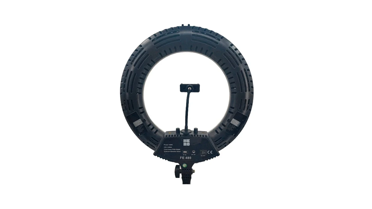 یکی از نقاط قوت اصلی رینگ لایت هیرو FE480 ، قدرت نوردهی بالای آن است. این دستگاه از 480 عدد LED باکیفیت تشکیل شده که نور سفید، گرم و ترکیبی تولید میکنند و دمای رنگ بین 3200 تا 5500 کلوین قابل تنظیم است؛ به همین دلیل، کاربر میتواند بر اساس نوع محیط یا سوژه، رنگ نور را تغییر دهد. این ویژگی باعث میشود FE480 در محیطهای تاریک، اتاق استودیو یا حتی فضای باز عملکردی ایدهآل داشته باشد.